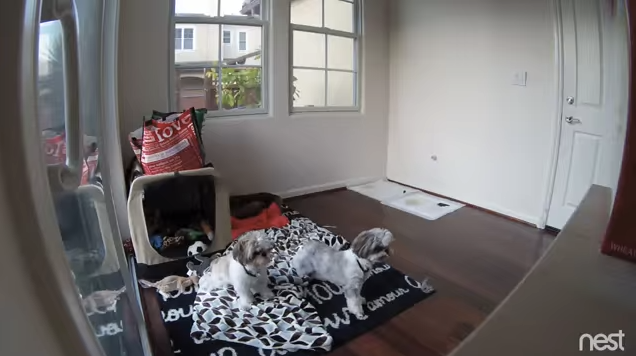 Owner Ashley Guerin posted the home surveillance video of Gus and Gizmo’s reaction via YouTube.