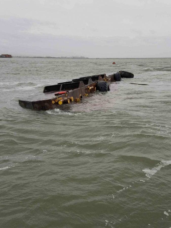 BAY AREA, CA — A 112-foot freight barge, the Vengeance, capsized and sank in San Francisco Bay Friday morning. It was leaking diesel fuel and hydraulic oil south of the Bay Bridge. A light sheen from the oil was visible on the surface of the water.