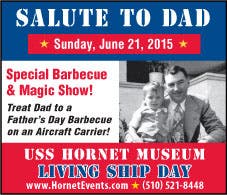 Treat Dad to a special Father’s Day celebration onboard the USS Hornet Museum that will include a BBQ and Magic Show. The event will coincide with the Museum’s Living Ship Day on Sunday, June 21th from 10 a.m. to 5 p.m..