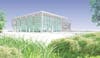 The glass walls surrounding the showroom will be overhung by a metal roof; steel columns will surround the building. Banta said the color palette for the building would be "very neutral."