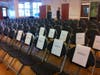 Inside the community center, roughly 120 seats had been set up for public attendees.
