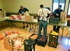 The volunteers arrive at the center at 8 a.m. and form an assembly line. As each paper bag makes its way down the line, it fills up with fresh produce, canned goods, rice and other food.