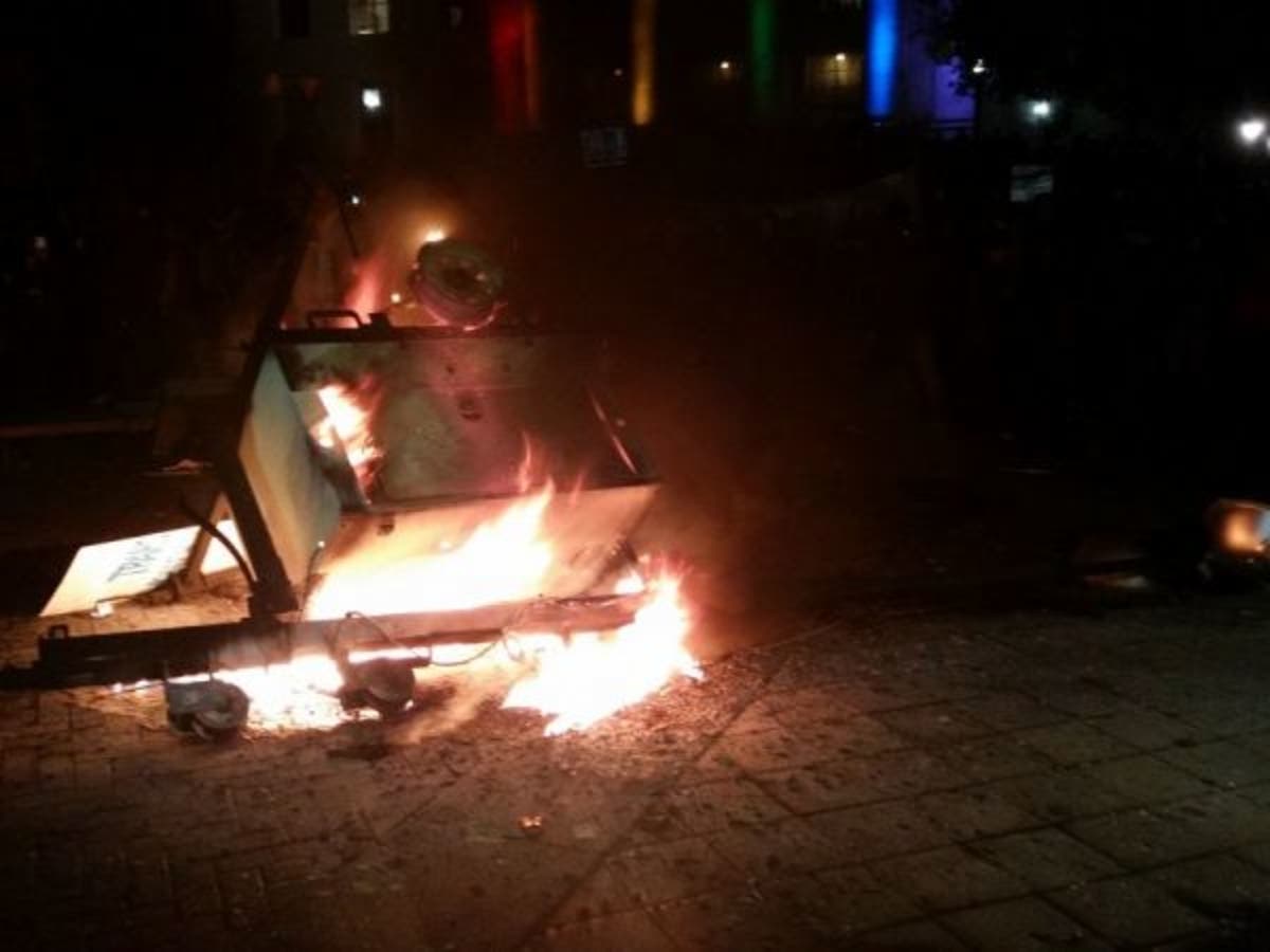 - The demonstration turned violent. Injuries were reported. The downtown BART station was closed for an hour.