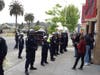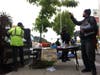 Around 8 a.m., an Alameda County sheriff's department van exited the Gill Tract through ; chanting could be heard inside the van.