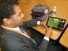 In the Demonstration Tent at Thursday's event, Joaquin Brown and Jeff Turner of iViu Technologies talked about their new location-based smart phone application, which communicates with Wi-Fi proprietary ID tags that were setup around the BTC.