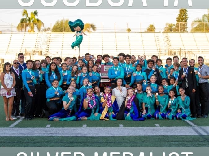 For the second year in a row the Charter Oak Marching Regiment won the silver medal out of 39 marching bands at the SCSBOA Field Show Championships. Chatter Oak is the only band in SCSBOA to medal last year and this year. The Color Guard won High Auxiliary and the percussion won 3rd place. This year, the Marching Regiment dedicates their performance and medal to Big Lou. Way to finish strong Charter Oak!”