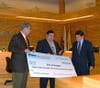 During the first portion of the evening meeting in Council Chambers, officials from the Upper San Gabriel Water District presented Mayor Peter Amundson with a ceremonial check for $88,514, a grant for the district's turf-removal program.
