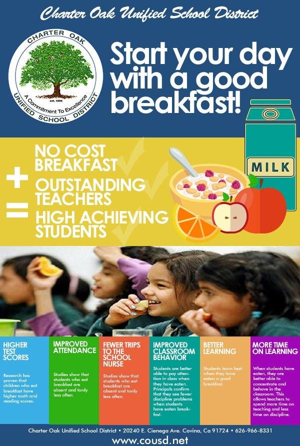 Also remember to take advantage of our free breakfast program! COUSD offers free breakfast to all students in all grades, district-wide, year-round!