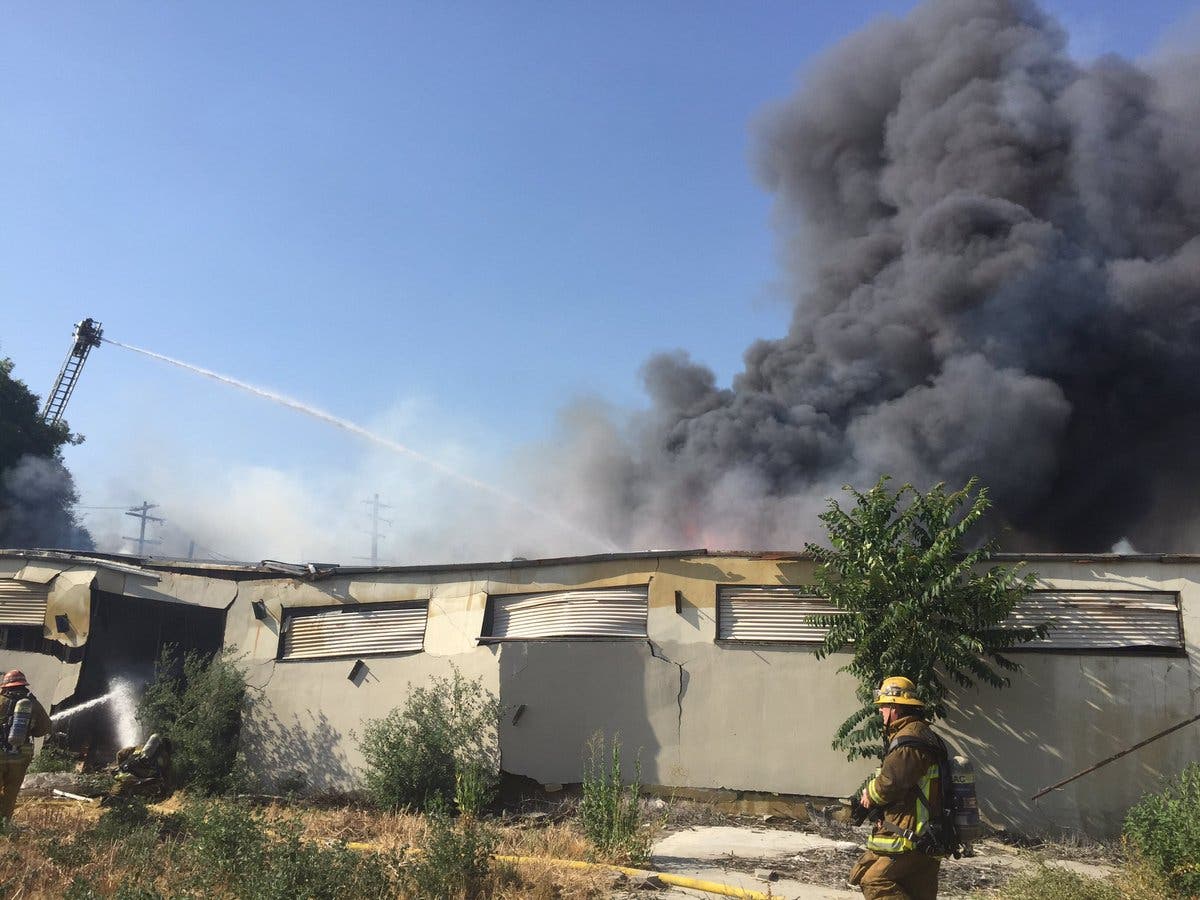The two-alarm blaze erupted around 4:30 p.m. at East Valley Boulevard and North Monterey Avenue, according to Los Angeles County Fire Department Inspector Randall Wright.