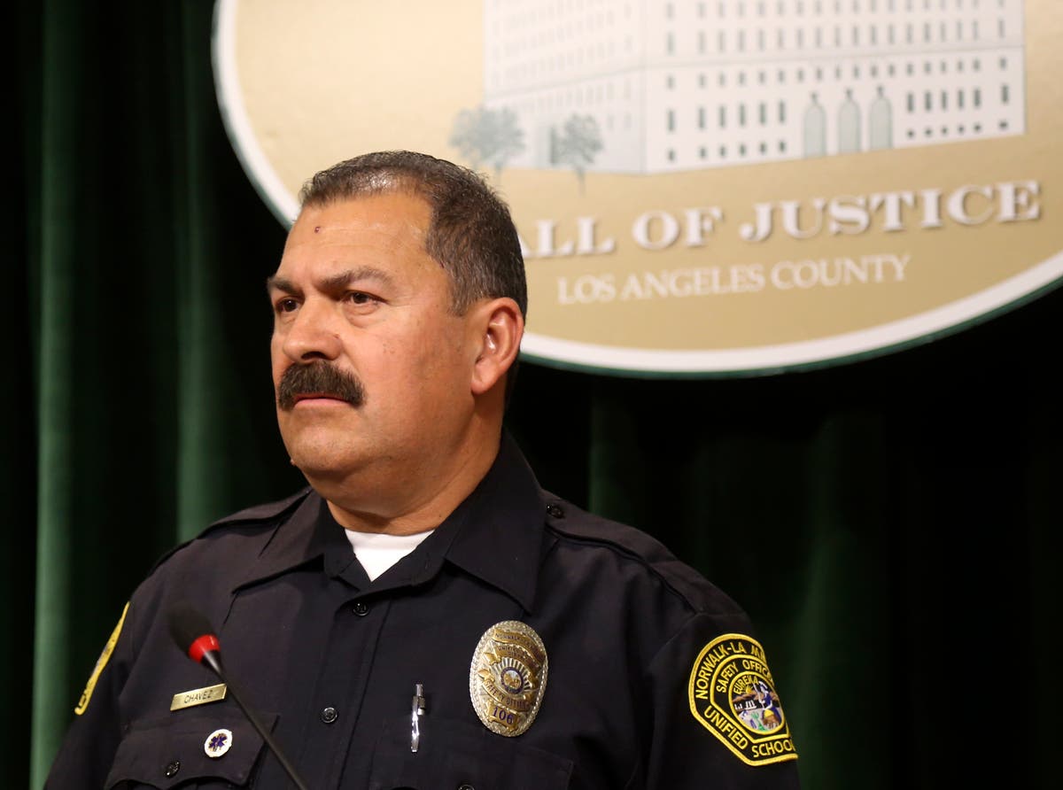 Photo Credit: School district security officer Marino Chavez talks during a news conference in downtown Los Angeles on Wednesday, Feb. 21, 2018. Chavez, a security officer at El Camino High School, overheard a student threaten to open fire at his Southern California high school, allowing officials to thwart the plot just days after a deadly shooting in Florida, authorities said Wednesday. (AP Photo/Mike Balsamo)