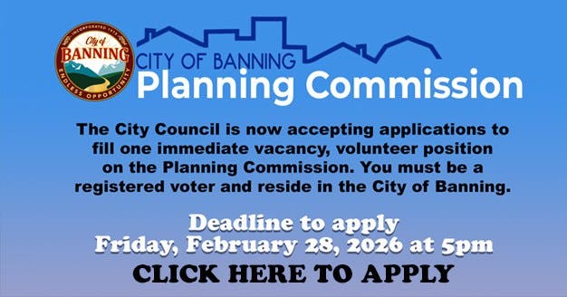 Another immediate vacancy is open with the City of Banning Planning Commission.