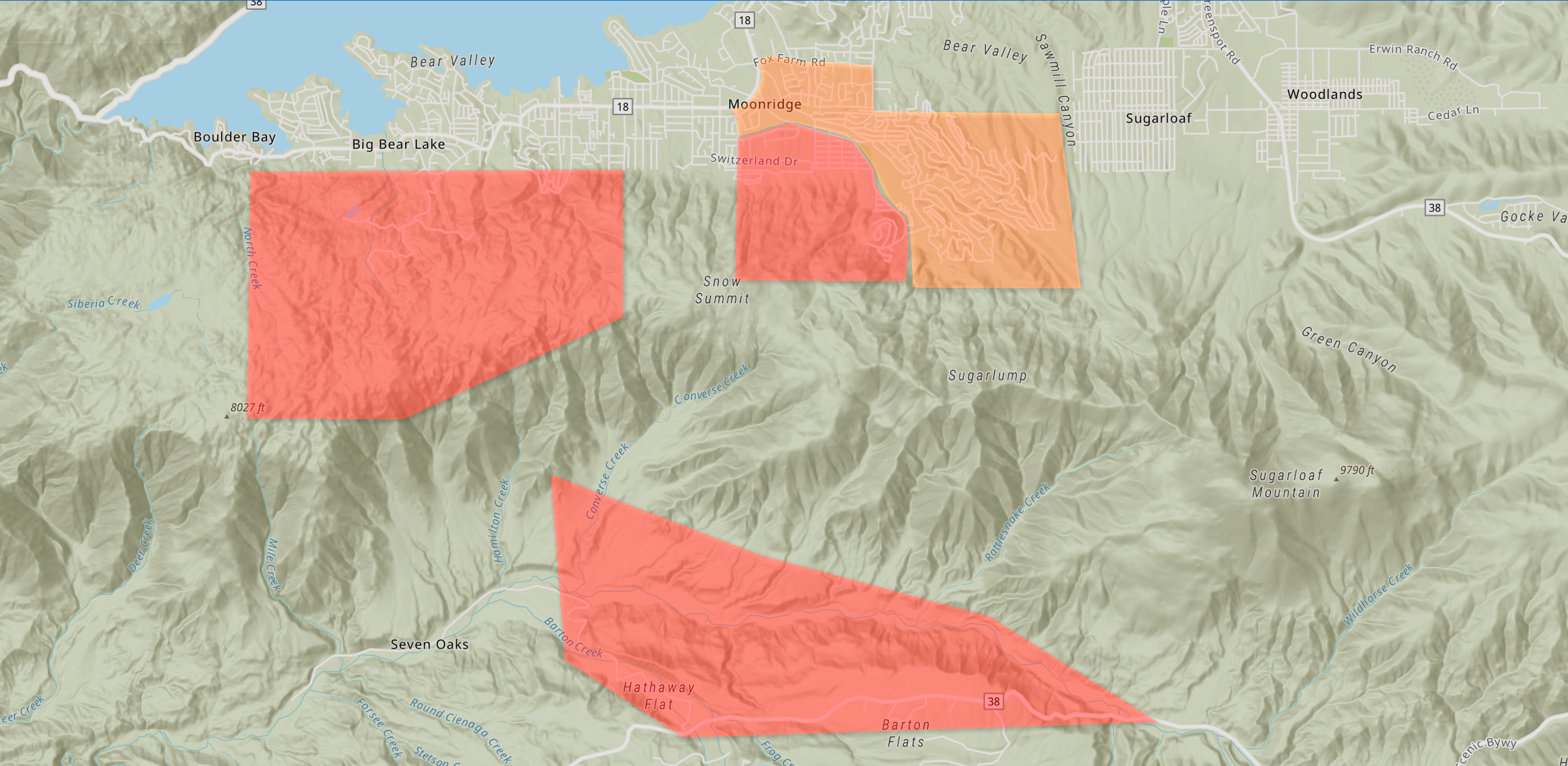 - At 4:00 pm the San Bernardino County Sheriff added an evacuation area south of Evergreen /South of Moon Ridge between Summit Blvd and Club View Drive.