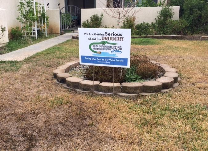 The Perris-based Eastern Municipal Water District began distributing “We Are Serious About the Drought” signs this week. The signs are free.