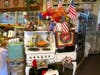 Welcome to Old America inside of Banning's the Farmhouse restaurant. The charm of American flags, red leather booths and down home food brings tourists in as they pass by on the 10.
