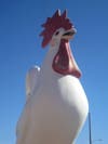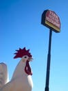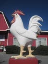 Travelers coming through on the 10 seem to be intrigued by the Farmhouse's exterior - it is shaped like a farmhouse, painted bright red, and guarded by Rollie, a giant rooster.
