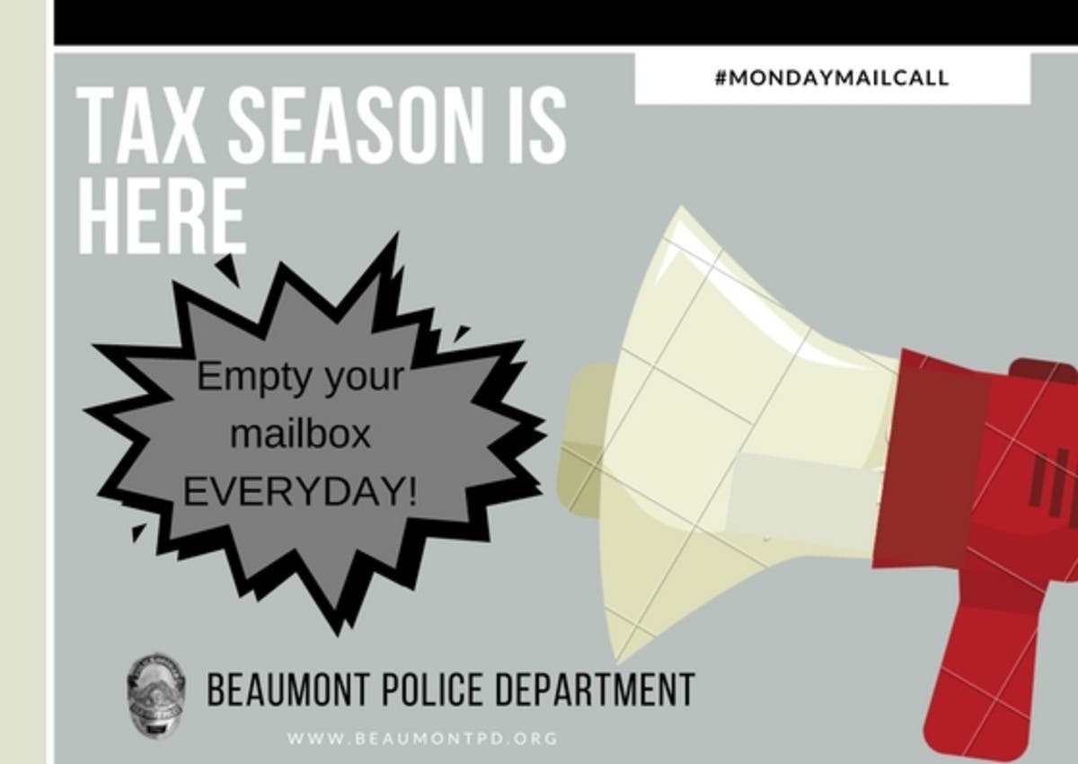 "This week's #mondaymailcall is a reminder that tax season is here," Beaumont police said.