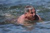 Beaumont police Chief Frank Coe wore a panda costume and a tutu when he led a team at the plunge last year. This year's plunge is again at Swim Beach on Big Bear Lake.
