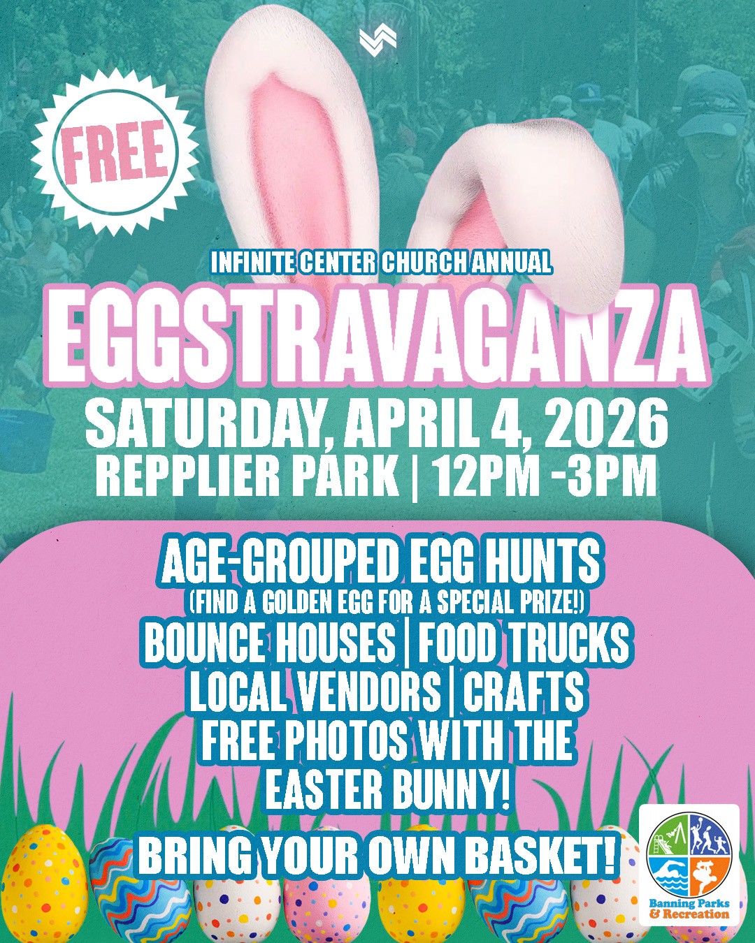 BANNING, CA — The City of Banning Parks and Recreation Department is teaming up with Infinite Center Church for their Annual Eggstavaganza Event in 2026.