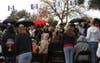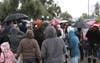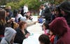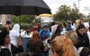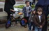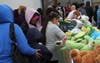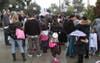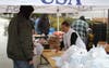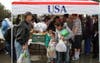 People had to stand in line in the rain to get tickets for the food bags and bicycles, and then stand in line again, but no one seemed to mind.