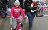 For some boys and girls it was their first bicycle ever. Many of the bikes came with color-coordinated training wheels. Some parents were just as excited as their children.