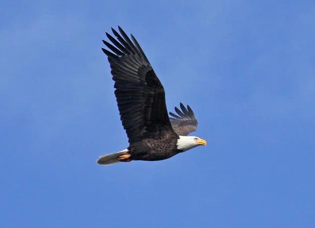 Because of hunting and habitat destruction, the American bald eagle was nearly driven to extinction in the past century. The birds were declared endangered in the 1970s. However, with some 10,000 breeding pairs identified across the continental United States, they were removed from the Endangered Species List in 2007.