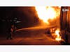 Riverside County Fire Department crews quickly responded to the scene to find large flames coming from the truck, which was hauling vehicles. They contained the fire in just over an hour's time, officials said.