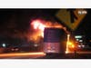 Fire officials said the first trailer of the big rig was damaged, along with three cars it was hauling.