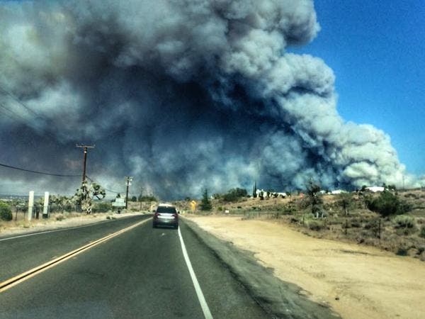 The blaze hit along the southbound 15 freeway south of the Cajon summit, at a location where the northbound lanes are separated by a quarter-mile median choked with bushes and shrubs that are tinder dry after years of drought.