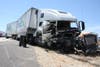 The flatbed driver, identified by the coroner's office as 59-year-old Miguel Rolon of Thermal, died at the scene. There were two people inside the FedEx truck, both of whom suffered only minor injuries, according to Meyer.