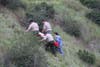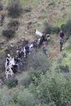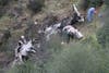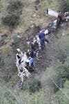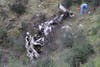 Nearby, a coroner's investigator and deputies worked with ropes and a metal stretcher to bring the pilot's remains up slope from where most of the wrecked plane came to rest.