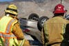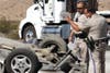 The 2001 Chevrolet Cavalier landed on its roof, killing the elderly female driver, and injuring her passenger. That woman, also in her 70s, was taken to Desert Regional Medical Center for minor injuries, according to CHP and Cal Fire crews.