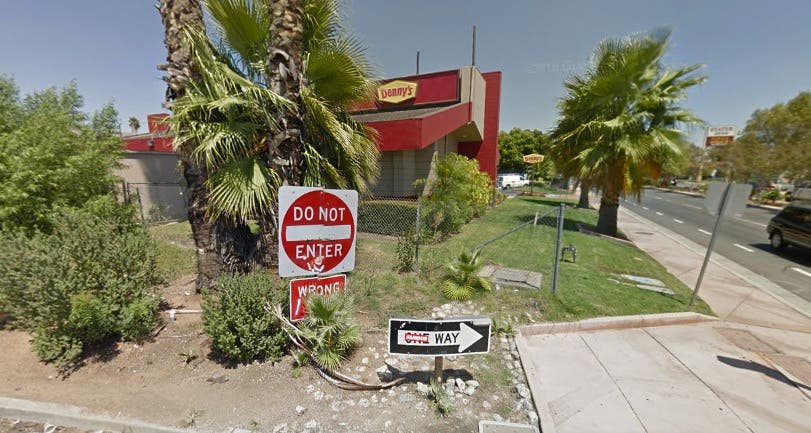 The pursuit began in Riverside about 6 a.m. and lasted about five minutes, said Riverside police Lt. Gary Leach. That’s when the woman driving took the Perris Boulevard offramp from the eastbound Pomona (60) Freeway, lost control of her vehicle and crashed into the Denny’s at 24952 Sunnymead Boulevard, Leach added.