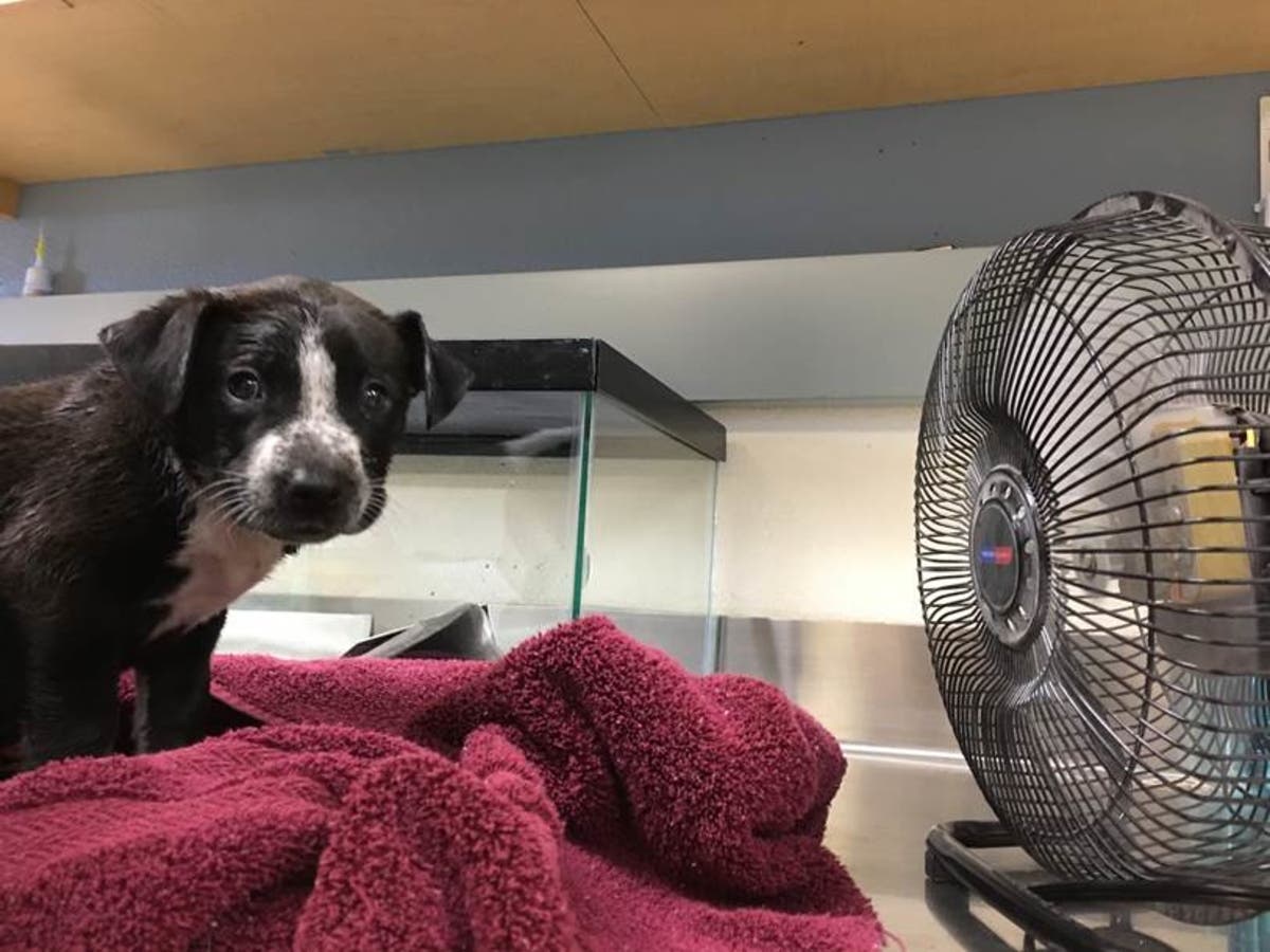 Veterinary staff at the Western Riverside County Animal Shelter in Jurupa Valley were treating the pup rescued in Riverside for heat exhaustion.