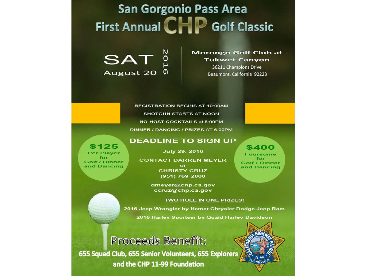 San Gorgonio Pass Area CHP Hosting Charity Golf Tournament at Tukwet