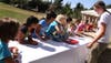 Volunteer Lisa Seeger, 17, of Ravensburg, Germany, led youths in a game of ‘Schokoladenessen’.