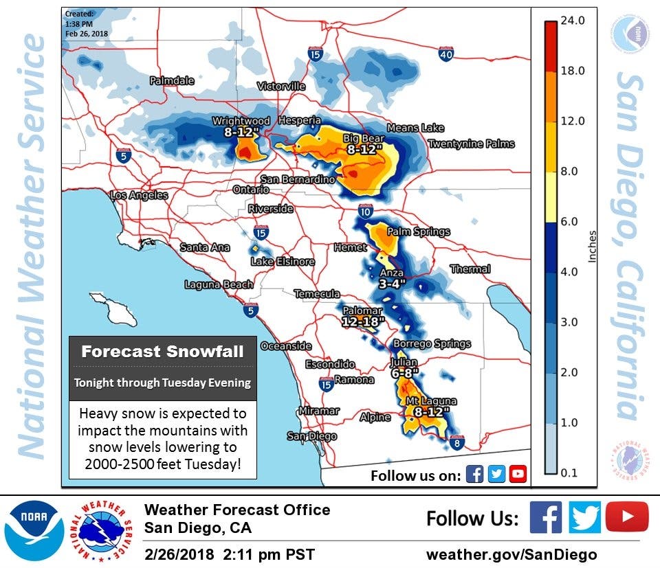 Bundle up, Riverside County! Area mountains may see up to 12 inches of snow!