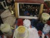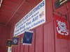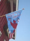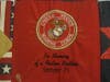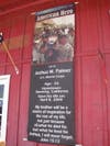 Outside the restaurant, a large banner showing Palmer with Iraqi children is draped in front of the entrance. Inside, there are poems and quilts in his honor, as well as U.S. flags and various items with stars and stripes or red, white and blue motifs.