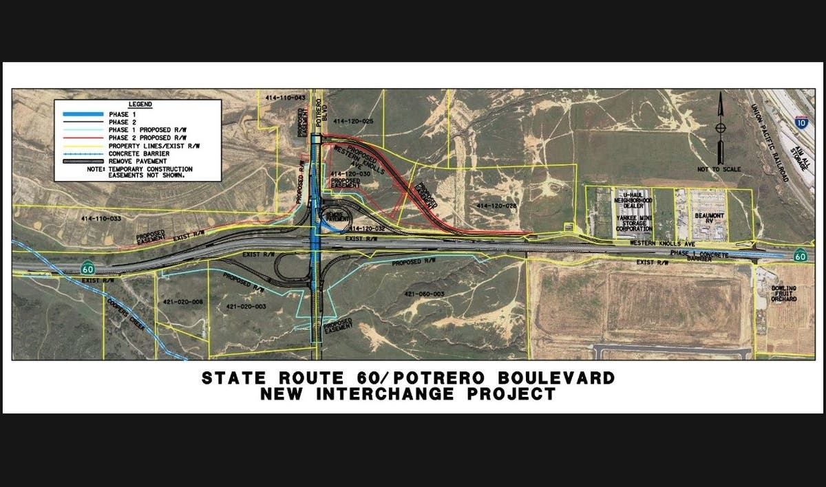 The closure, which will affect through-traffic and not construction vehicles, will be between Oak Valley Parkway and Western Knolls. Officials say it's necessary as construction work continues on the Potrero Interchange over State Route 60. The intersection will eventually be realigned and underground utilities need to be laid.