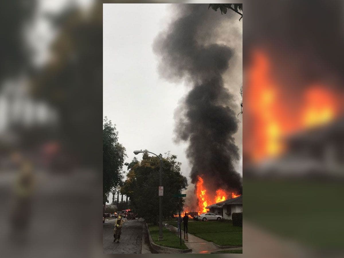 #BreakingNews A Cessna 310 plane crashes into homes in Riverside. The plane was heading to San Jose from Riverside. @KTLA pic.twitter.com/NEdrVxyVAA