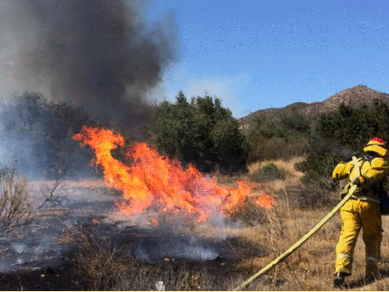 The blaze hit along the southbound 15 freeway south of the Cajon summit, at a location where the northbound lanes are separated by a quarter-mile median choked with bushes and shrubs that are tinder dry after years of drought.