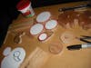 I'd cut my discs out before deciding to make the templates, but you can skip that step and just apply the templates directly to the wood. Be sure to leave enough space between templates for the saw. (I used a band saw for this, and it was a great help.)