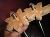 I put the gears onto a piece of the maple wood from the bread slicer to demo. They work well enough for a first try. They would work better if I finished them more, but I'm tired, so they're done.
