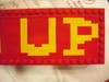 Studs up - Studs are placed facing up, and the mosaic is smooth, viewed from the side of the bricks.