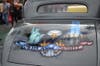 On the trunk of the car was a mural that shows the Twin Towers along with the U.S. Flag and the Statue of Liberty.
