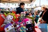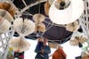 Quick-thinking customers joined in the fun and helped to bring the shelters back to earth without upsetting the merchandise piled high on tables. Onlookers, clutching snacks on sticks bought from food trucks, cheered them on, laughing like children witnessing a wondrous circus act.
