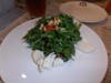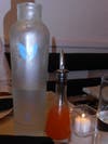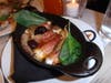 Decor: Great things really do come in small packages or, in the case of Michael’s Pizzeria, small spaces. The motif, a mix of ebony and white with pleasing citrus accents, creates a hip look that is embraces an uncluttered and streamline feel. A long banquette runs the length of one wall with tables for two, crowned with white Carrera marble with rich black veins, neatly aligned and ready to be joined together to create communal dining for larger parties. A handful of tables line the other side of the restaurant as well. The micro-sized exhibition kitchen, where the chef prepares everything (and I mean everything) from scratch, sits in the back allowing guests to watch the culinary show unfold. And, speaking of chefs, the chef, Joseph Boness, dabbles in more than just the culinary arts. His Fellini film-inspired paintings don the walls of Michael’s Pizzeria. A chef that can cook and paint – who knew?