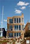 Located on the Peninsula, this beachfront home is 4,876 sq. ft. with an elevator serving all four levels. It has four bedrooms, five baths, three fireplaces, a wine cellar, six patios, a finished basement, and a three-car garage. Included in the square footage is mother-in-law quarters with a separate kitchen. Sitting right on the sand, it has views of the ocean, and Alamitos Bay.
