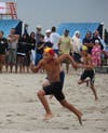 In Aidan’s event, the distance run, all competitors had to run a kilometer (1,093 yards) down the beach. About half a kilometer down the beach was a flag that marked when competitors needed to turn around and run back to the finish line.