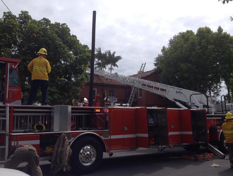 Nearly three dozen firefighters who were sent to 250 Belmont Ave. at 2:42 p.m. kept the flames from spreading to a neighboring home, said Jake Heflin of the Long Beach Fire Department. It took about 15 minutes to extinguish the blaze, he said.