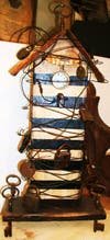 Payne Bolton's work is mostly assemblage shadow boxes, handmade books and jewelry. She takes mixed media to a whole new level with found objects such as rusty wire and tiny bottles and encaustic beeswax medium. “My mind is always creating even if I'm not using my hands. Some of my pieces are designed unconsciously while I'm asleep, some just show up one day.”